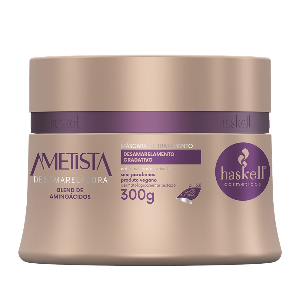 Modo de usar: após lavar os cabelos, aplique a máscara mecha por mecha, do comprimento às pontas. Massageie e deixe agir de 3 a 5 minutos. Se preferir, faça o uso de touca térmica. Enxágue em seguida, retirando todo o resíduo de creme dos cabelos. Potencialize os resultados utilizando toda a linha Ametista Desamareladora.